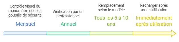 L’entretien régulier de votre extincteur garantit son bon fonctionnement en cas de besoin. Nous recommandons les vérifications suivantes :