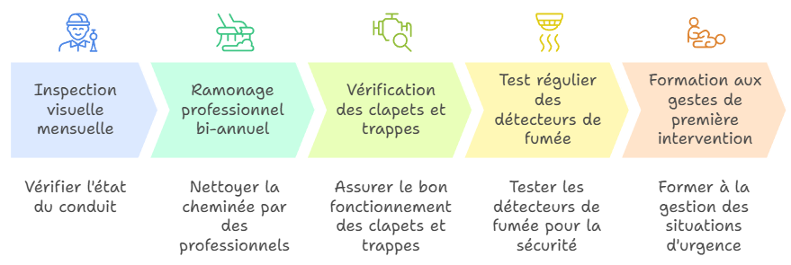 La prévention reste votre meilleure alliée contre les feux de cheminée. Nous préconisons l’installation et la vérification régulière de détecteurs de fumée (DAAF), obligatoires depuis mars 2015. Ces dispositifs permettent une alerte précoce, essentielle pour intervenir rapidement.