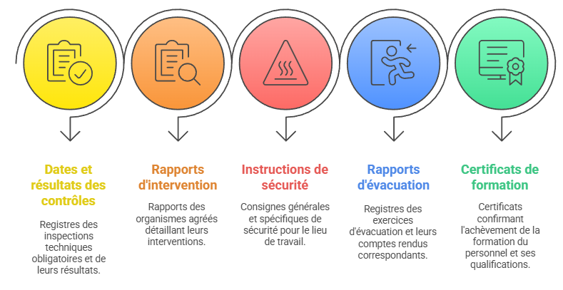 Dans notre pratique quotidienne d’accompagnement des entreprises, nous constatons que les registres les plus efficaces contiennent systématiquement des éléments bien structurés. Parmi ceux-ci figurent les rapports de vérification des installations électriques, les contrôles des équipements de levage, et les bilans des exercices d’évacuation. Vous devez également y inclure les résultats des contrôles périodiques des extincteurs et des systèmes d’alarme incendie, éléments fondamentaux lors d’une formation incendie complète.