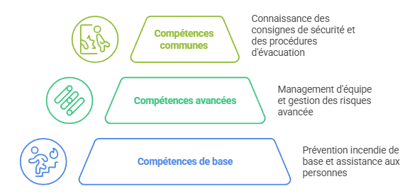 • Compétences communes : connaissance des consignes de sécurité, maîtrise des procédures d’évacuation
